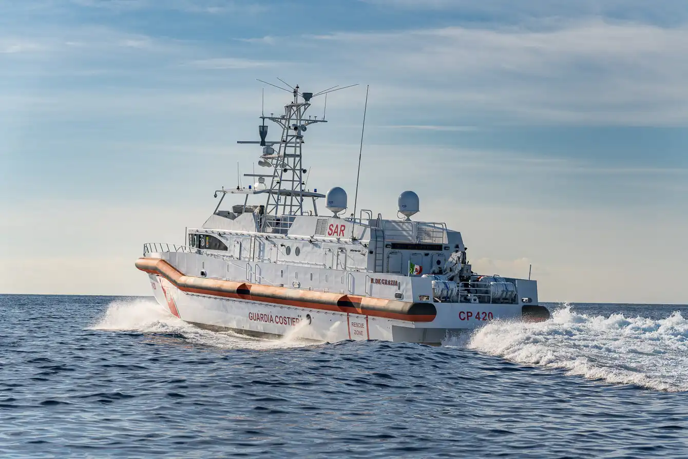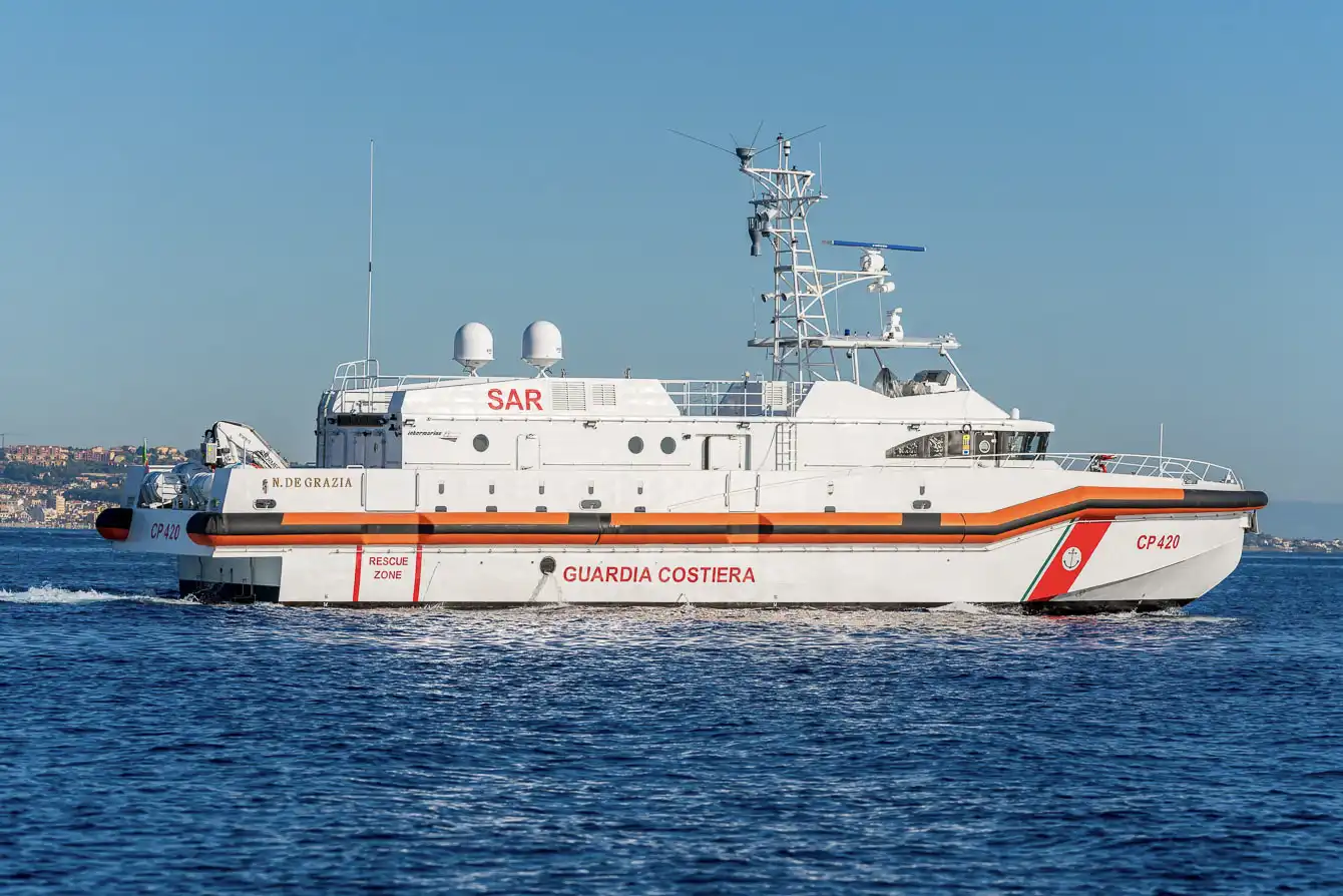 The “IM-FPB 33-SAR", of which the first was named Natale De Grazia, is the biggest self-righting and unsinkable fast patrol boat ever built in Italy and consists of three Fast Patrol Boats (FPBs), especially suitable for Search & Rescue operations (SAR) even in the most challenging meteorological and marine conditions, designed and built for the Italian Coast Guard.